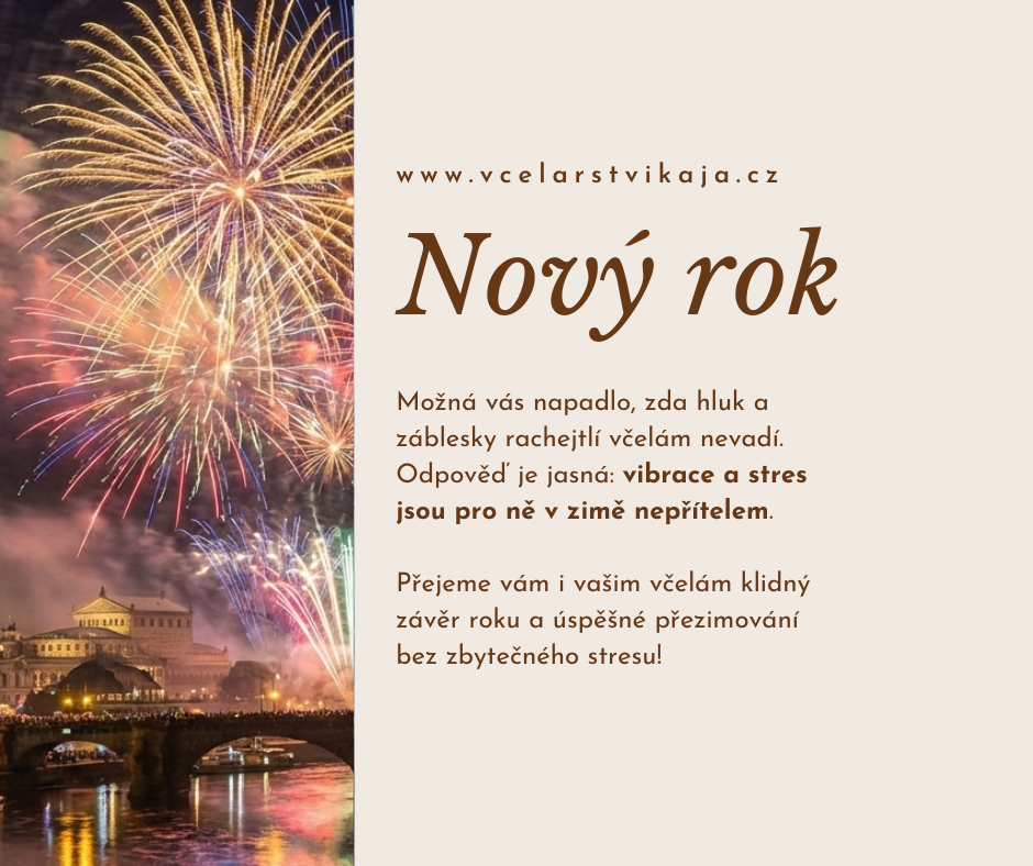 Zatímco my vítáme nový rok velkolepými ohňostroji a oslavami, pro naše včely je konec prosince obdobím toho nejhlubšího zimního klidu. Možná vás napadlo, zda hluk a záblesky rachejtlí včelám nevadí. Odpověď je jasná: vibrace a stres jsou pro ně v zimě nepřítelem.